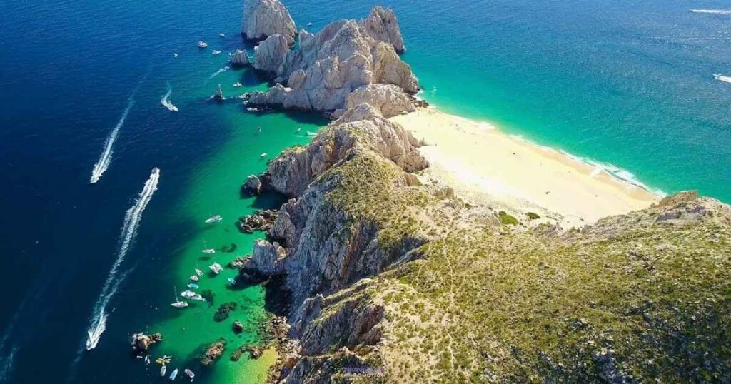 Cabo San Lucas sits at the southern tip of the Baja Peninsula . Dramatic cliffs , desert landscapes and beautiful beaches make it visually stunning . Visitors enjoy whale watching , luxury resorts and boat trips to the famous rock formation known as El Arco . It is easily among the best places to visit in Mexico for coastal scenery .