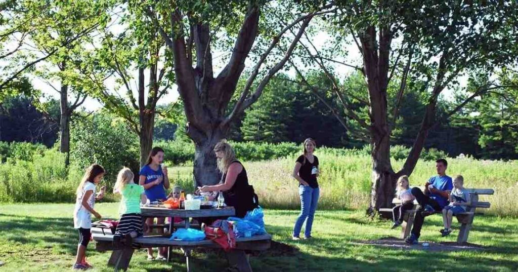 Bring picnic blankets , fresh food , drinks , reusable utensils, napkins and outdoor games for a comfortable experience.