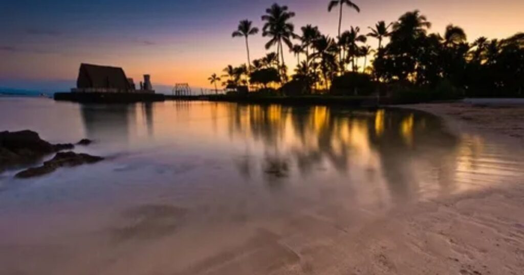 The west side of Hawaii offers the best places to watch sunset on big island and each spot feels different . Some travelers want a quiet beach. Others want cliffs with wide ocean views. From sandy shores to lava coastlines , the evening light creates a peaceful atmosphere that feels calm , warm and unforgettable during golden hour by the horizon at sunset.