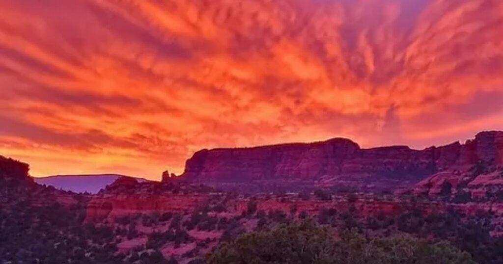 Sedona sunsets feel magical as red rocks glow. Travelers enjoy Sedona evening activities, relaxing at viewpoints , taking photos and experiencing peaceful Airport Mesa sunset views while the desert transitions into calm night skies .